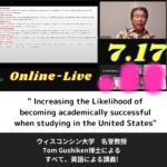 2024年7月17日 / 最終更新日時 : 2024年7月17日 InternationalAJ LIVE授業 Gushiken博士のライブ授業終了 ウィスコンシン大学名誉教授・Gushiken博士によるオンラインライブ授業、無事終わりました!先生は今ハワイにおられ、ハワイからZOOMで繋いでのライブ授業でした。 これからアメリカの大学に留学する方にはぴったりの内容。 […]