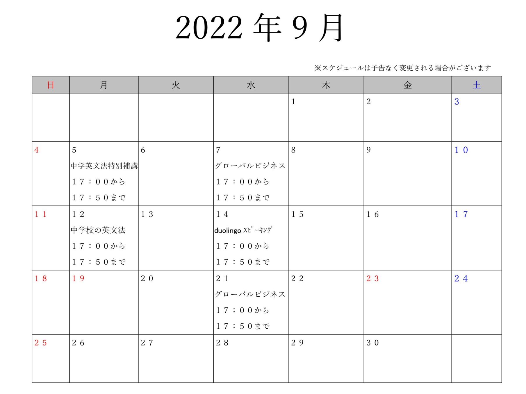 春学期に引き続き、中学校で習う英文法を丁寧に勉強していきます。中学生や英語に自信がない方は、必ず復習をして授業に臨んでください。