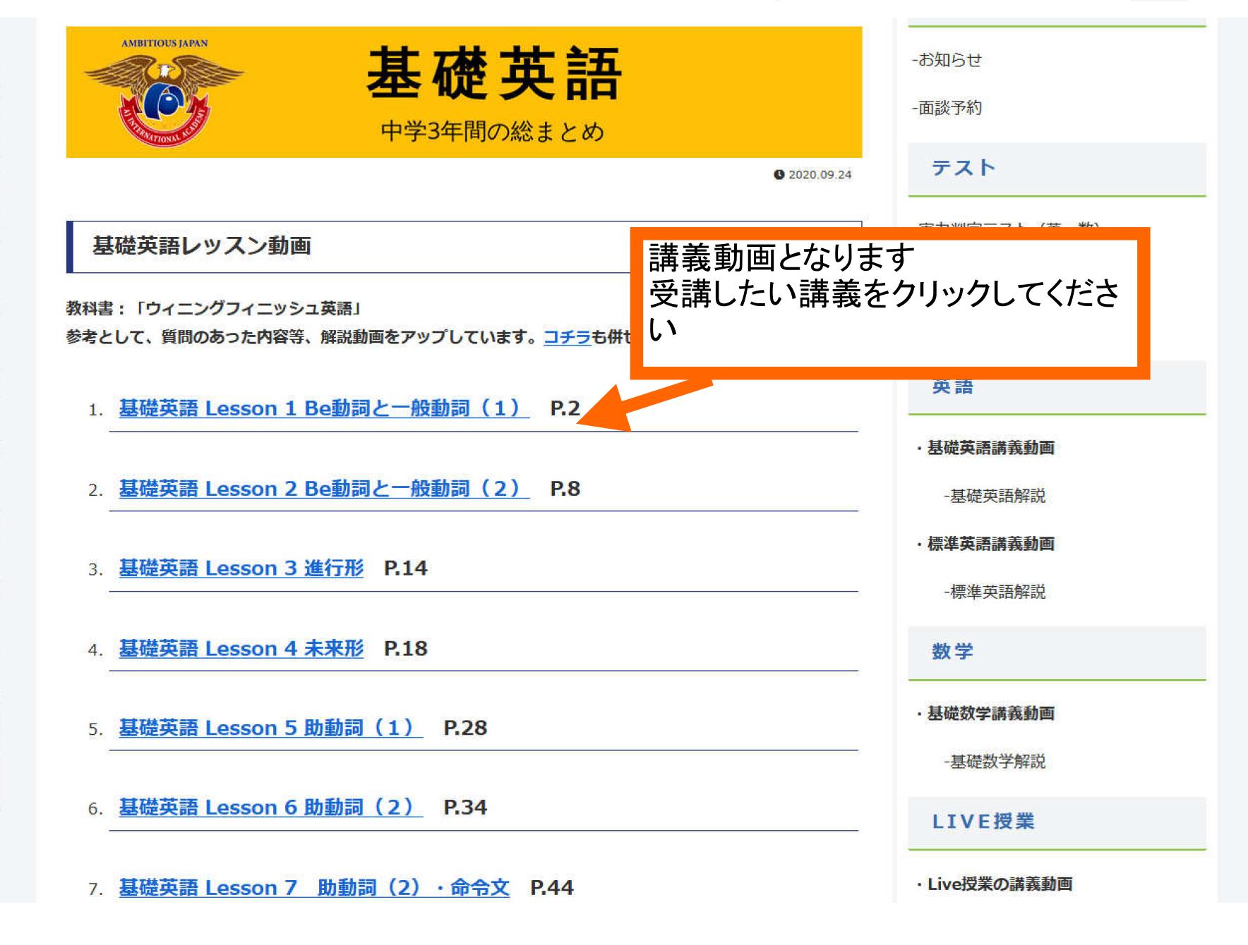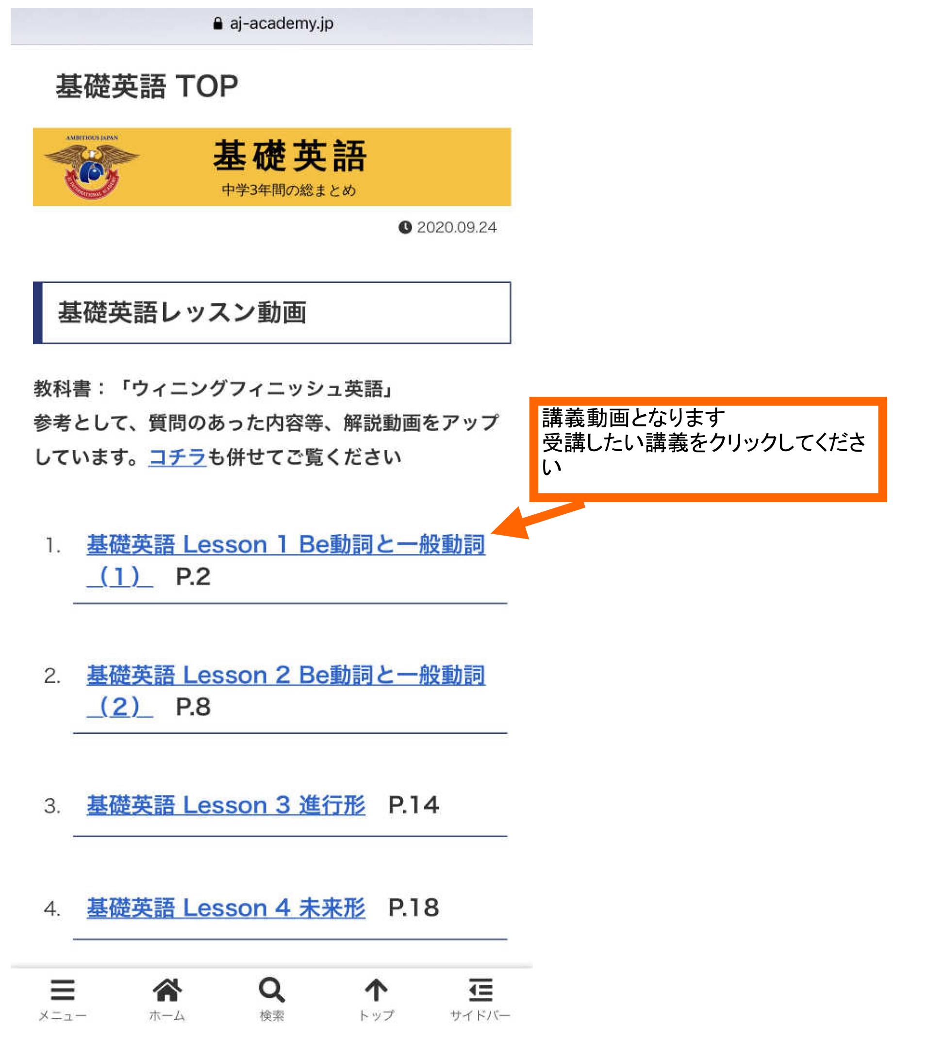 追加された授業をクリック(またはタップ)して受講してください
