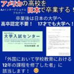 2023年7月19日 / 最終更新日時 : 2023年7月19日 InternationalAJ お知らせ 米国通信高校卒業→日本の大学 いよいよAO入試のシーズンが来ますね。 米国通信制校高校の卒業で、日本の大学受験ももちろん可能です。 独立行政法人大学入試センターに、米国通信制高校の卒業証書と履歴書を送り、受験資格の有無を聞きます。 送られてきた回答書 […]