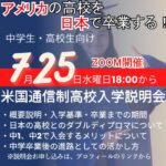 2024年7月23日 / 最終更新日時 : 2024年7月23日 InternationalAJ お知らせ アメリカの高校を日本で卒業する(説明会) 説明会:「米国通信制高校学校説明会」 日時:7月25日(木) 時間:18時00分 備考:ZOOMでのオンライン説明会 を開催いたしますので、ご案内させて頂きます。 お申込みフォーム 2024年9月入学(8月10日願書受付 […]